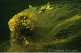 Grote vlokslak ( Aeolidia papillosa ) met eitjes