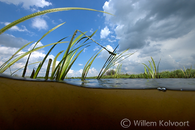 Half boven / onderwater
