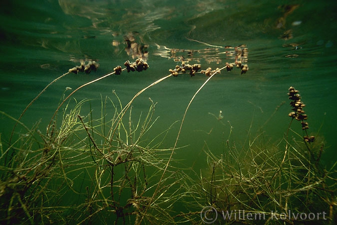 Schedefonteinkruid ( Potamogeton pectinatus ) met zaadjes.
